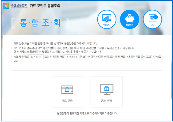 여신금융협회 카드포인트 통합조회 계좌입금